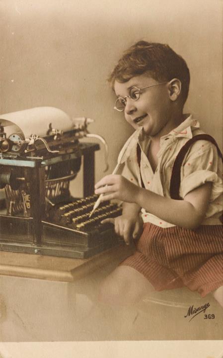 Kind, Schreibmaschine, Kleidung, Mode, Humor
