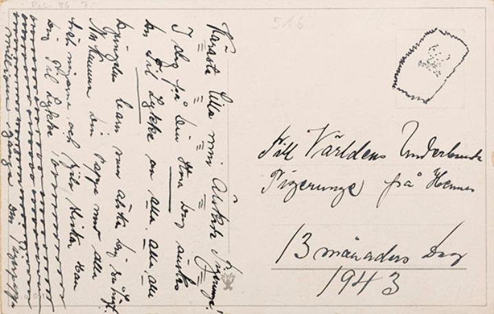 Illustrierte Postkarte; Grafik, polychrom; Nr. 0516 Rückseite: Mädchen mit Schreibmaschine Vorderseite beschrieben und adressiert