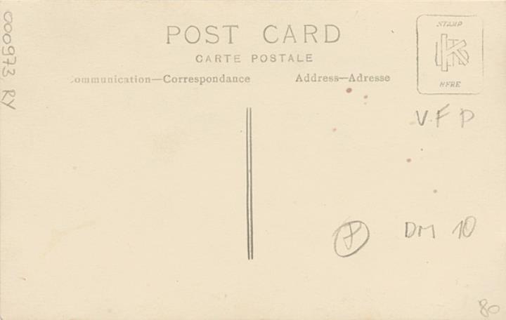 Illustrierte Postkarte; Fotografie, monochrom Rückseite: Nahaufnahme eines Schreibtischs mit Schreibmaschine Vorderseite nicht beschrieben