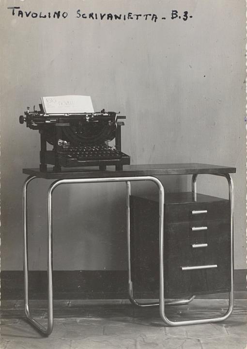 Illustrierte Postkarte; Fotografie, monochrom; Foto: Novelli Rückseite: Schreibtisch "Contor" (Bauhaus Entwurf: Arnold Stendal, 1927/28) mit Schreibmaschine; Titel handschriftlich hinzugefügt Vorderseite nicht beschrieben