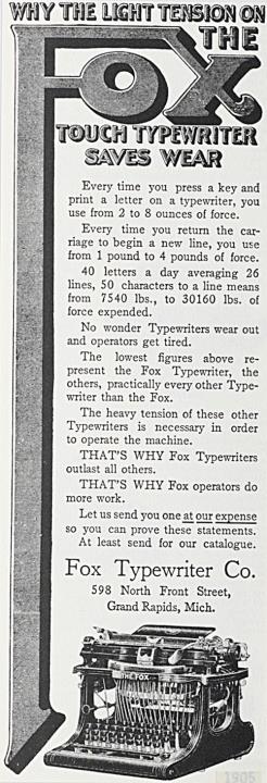 Werbeanzeige für Schreibmaschine Fox monochrom