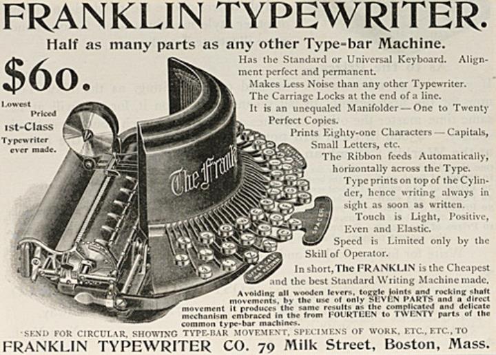 Werbeanzeige für Schreibmaschine Franklin monochrom