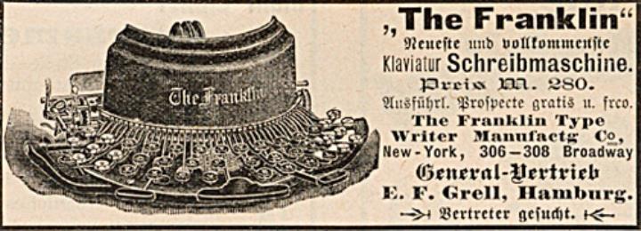 Werbeanzeige für Schreibmaschine Franklin monochrom