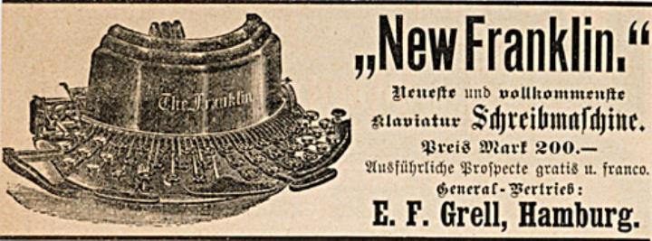 Werbeanzeige für Schreibmaschine Franklin monochrom, fünf Exemplare