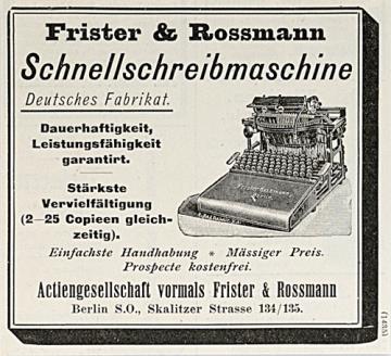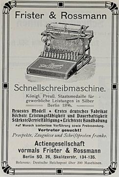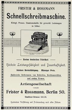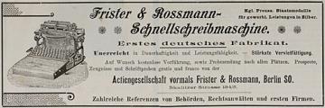Werbeanzeige für Schreibmaschine Frister & Rossmann monochrom