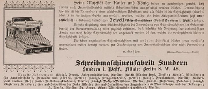 Werbeanzeige für Schreibmaschine Jewett monochrom