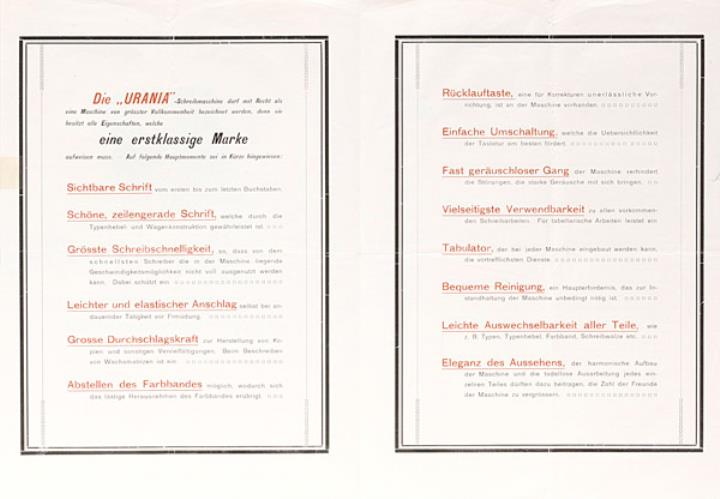 Urania eine Schreibmaschine grösster Vollkommenheit
