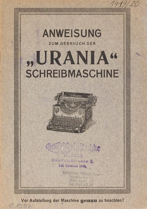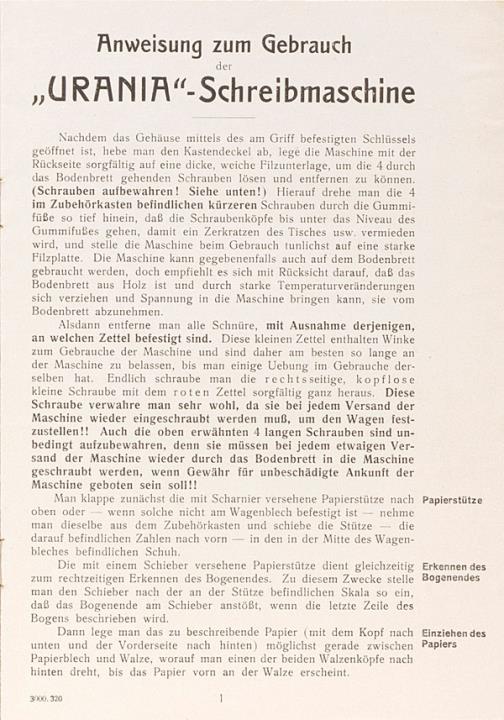 Anweisung zum Gebrauch der Urania Schreibmaschine