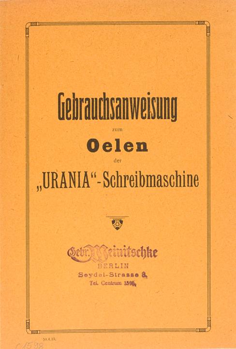 Gebrauchsanweisung zum Oelen der Urania-Schreibmaschine
