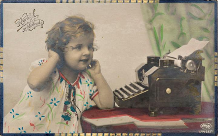 Kind, Schreibmaschine, Gruß, Glückwunsch