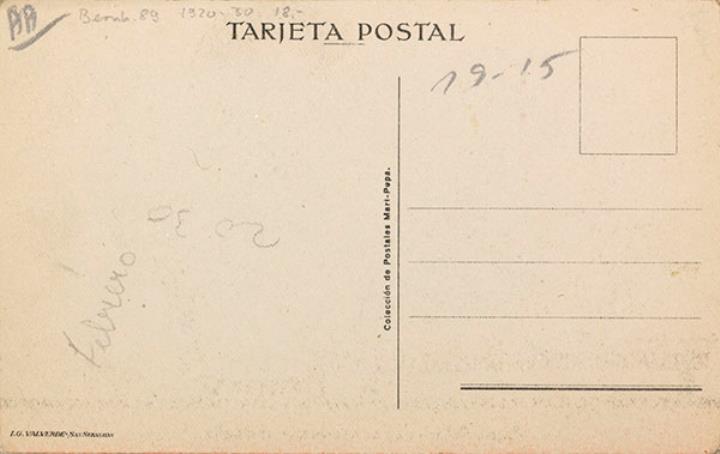 Illustrierte Postkarte; Grafik, polychrom; Grafik: Maria Claret Rückseite: Mädchen mit Schreibmaschine Vorderseite nicht beschrieben