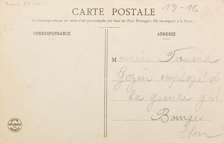 Illustrierte Postkarte; Fotografie, koloriert Rückseite: Junge im Kostüm (Rokoko) mit Schreibmaschine Yost; Briefmarke Postes Francaises 5c; Poststempel Cher/21 II 07 Vorderseite beschrieben