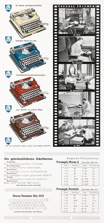 Faltprospekt für Schreibmaschine Triumph Norm 6 Die Kleinschreibmaschine für Büro, Reise und Haus Nr. 5059 (138)