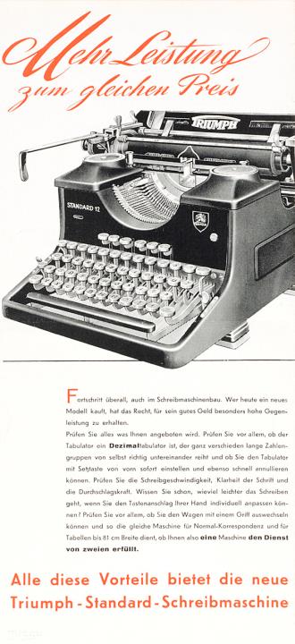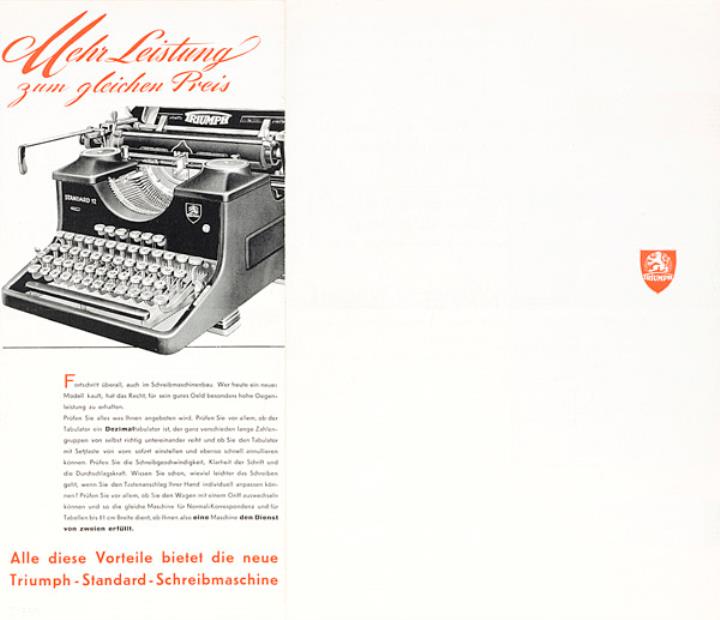 Faltprospekt für Schreibmaschine Triumph Standard 12