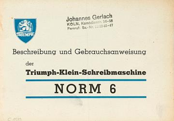 Beschreibung und Gebrauchsanweisung der Triumph-Klein-Schreibmaschine Norm 6
