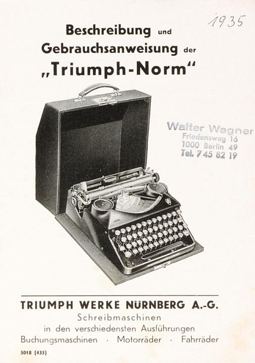 Bedienungsanleitung für Schreibmaschine Triumph Nr. 5018 (435) Jahreszahl handschriftlich in Anleitung vermerkt
