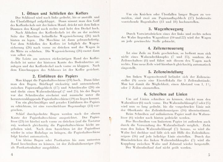 Bedienungsanleitung für Schreibmaschine Triumph Nr. 5018 (435) Jahreszahl handschriftlich auf Anleitung vermerkt