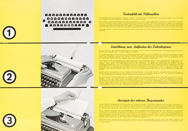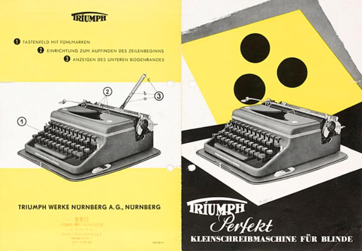 Faltprospekt für tragbare Schreibmaschine Triumph mit Sondereinrichtung zur erleichterten Bedienung für Blinde Nr. 1032/451/n