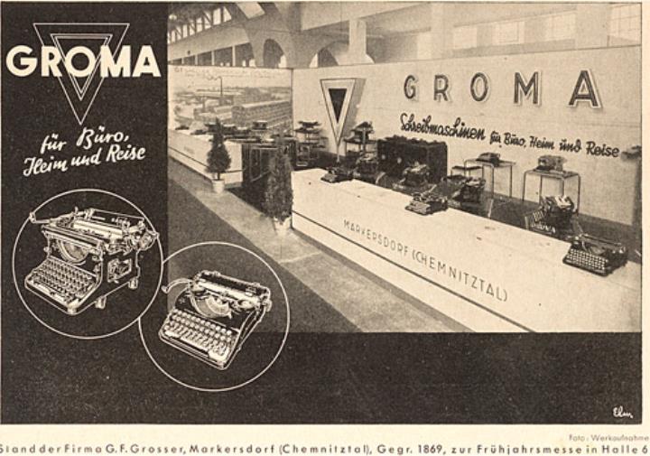 Werbeanzeige für Schreibmaschine Groma monochrom Grafik: Elm