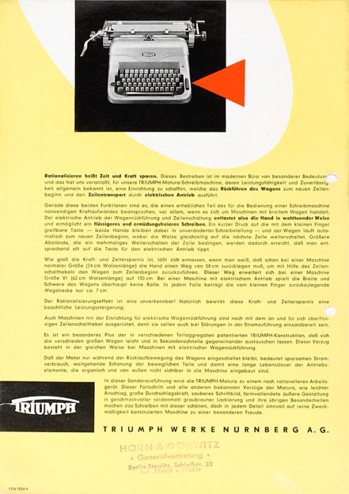 Prospekt für Schreibmaschine Triumph Matura Nr. 1154/1054/n Datum handschriftlich vermerkt