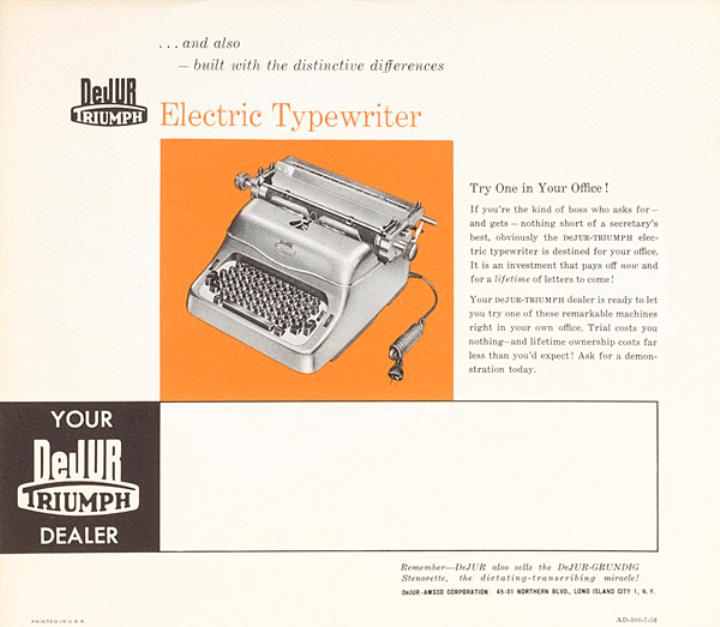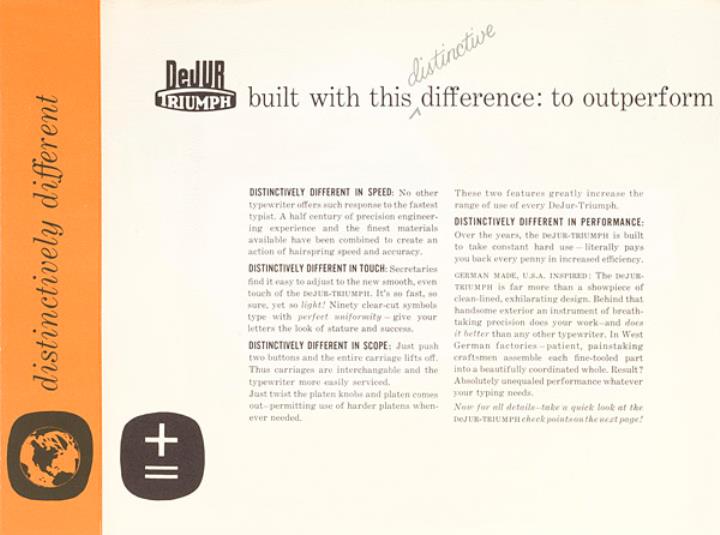 Faltprospekt für Schreibmaschine DeJur Triumph Nr. AD-300-7-58