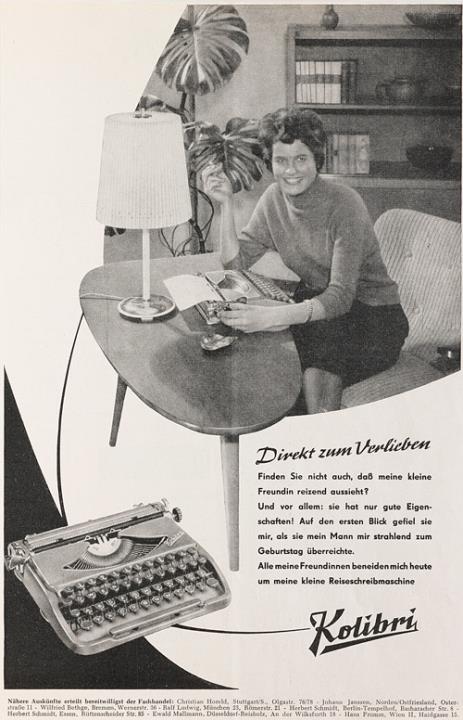 Werbeanzeige für Schreibmaschine Groma Kolibri monochrom