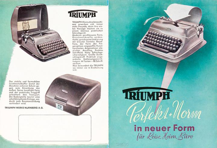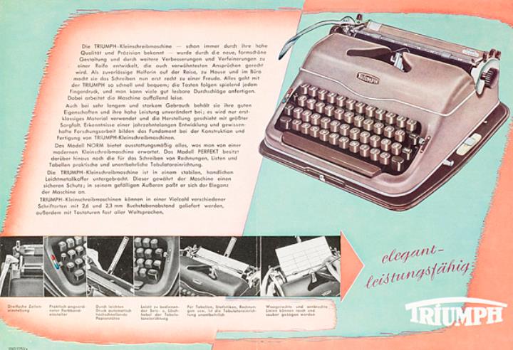 Faltprospekt für Schreibmaschine Triumph Perfekt und Norm in neuer Form für Reise, Heim, Büro Nr. 1082/1253/s