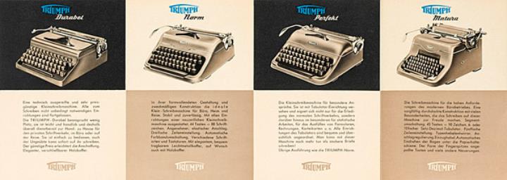 Faltprospekt für Schreibmaschine Triumph Nr. 1120/1054/m Grafik: Stöss