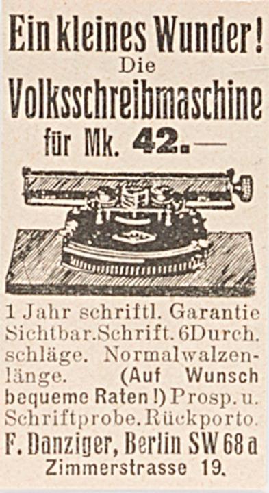 Ein kleines Wunder! Die Volksschreibmaschine für Mk. 42.-