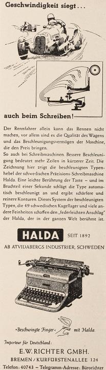 Werbeanzeige für Schreibmaschine Halda monochrom, zwei Exemplare