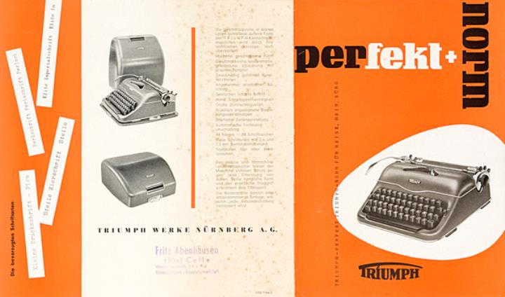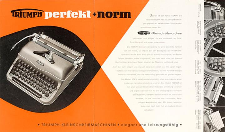 Faltprospekt für Schreibmaschine Triumph Perfekt und Norm für Reise, Heim, Büro Nr. 1155/1154/n