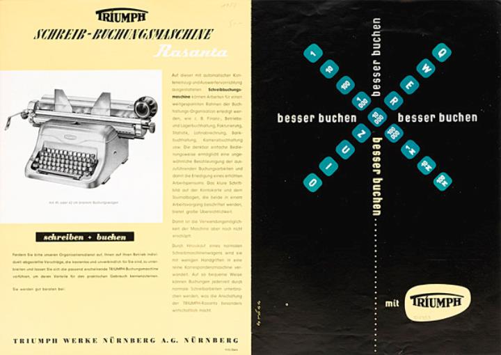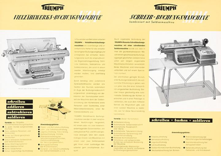 Faltprospekt für Schreib- und Buchungsmaschinen Triumph Nr. 1125/254/n Grafik: Stöss
