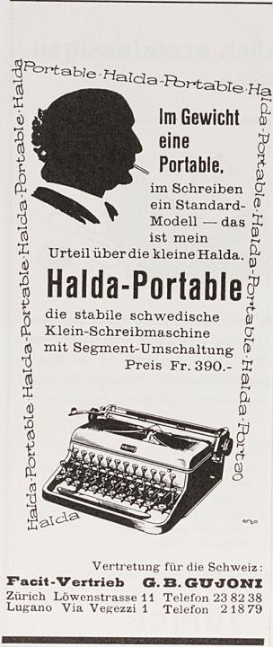Werbeanzeige für Schreibmaschine Halda monochrom