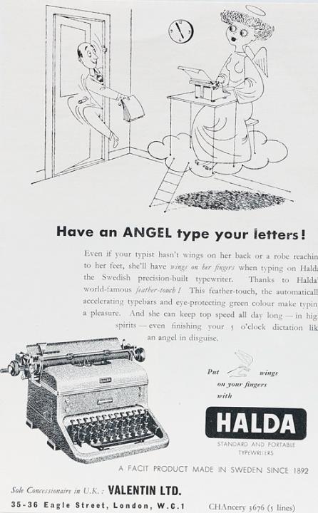 Werbeanzeige für Schreibmaschine Halda monochrom
