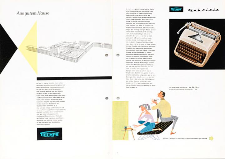 Prospekt für Schreibmaschine Triumph Nr. 1239/357/pf; Grafik: Stöss Datum handschriftlich vermerkt