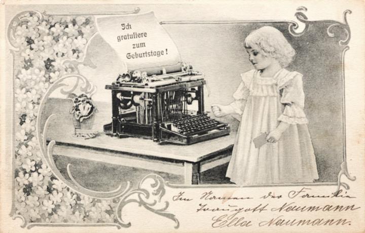 Schreibmaschine, Kind, Gruß, Glückwunsch