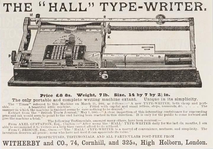 Werbeanzeige für Schreibmaschine Hall monochrom