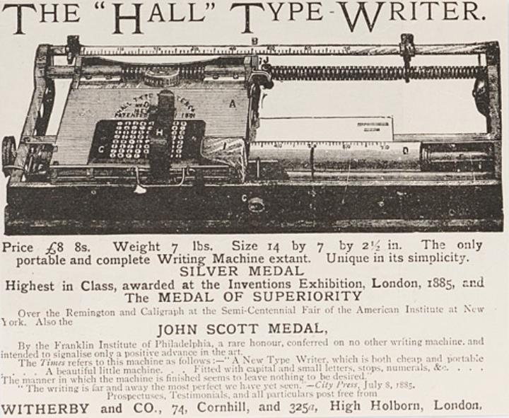 Werbeanzeige für Schreibmaschine Hall monochrom