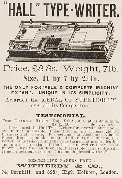 Werbeanzeige für Schreibmaschine Hall monochrom