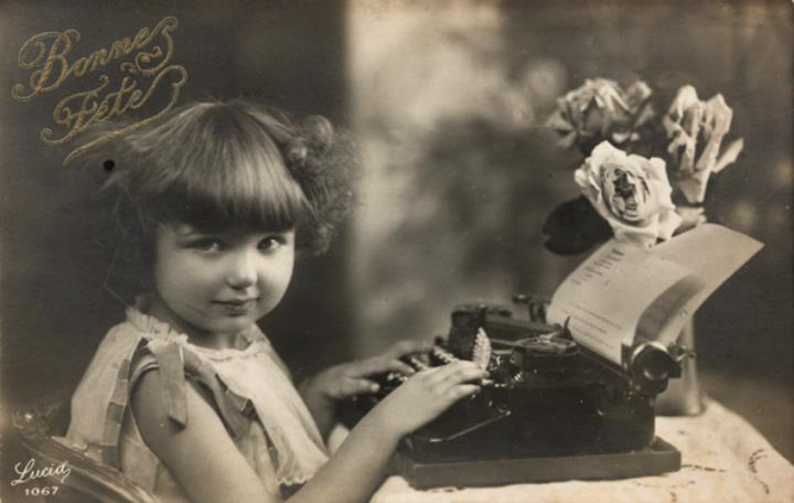 Schreibmaschine, Kind, Gruß, Glückwunsch