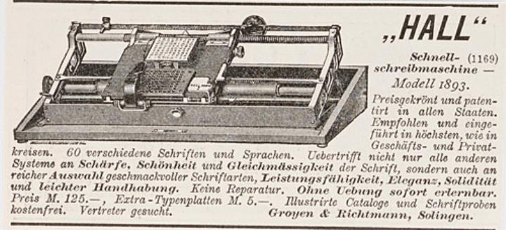 Werbeanzeige für Schreibmaschine Hall monochrom, drei Exemplare