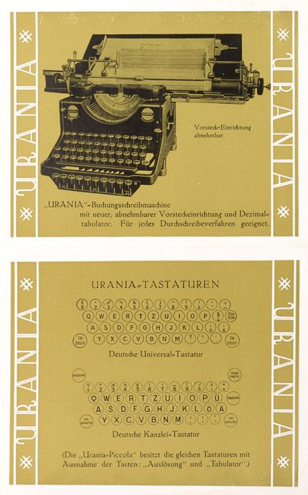 Faltprospekt für Schreibmaschine Urania Grafik: Franck Nr. 296