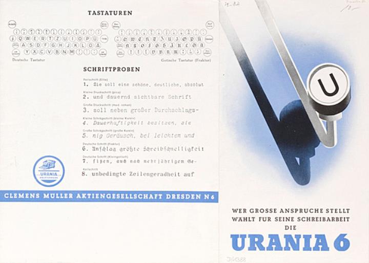 Faltprospekt für Schreibmaschine Urania 6