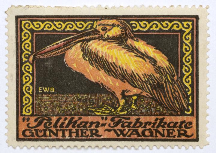 Reklamemarke/Werbemarke für Schreibwarenhersteller G. Wagner (Pelikan) rechteckig, polychrom