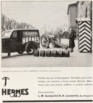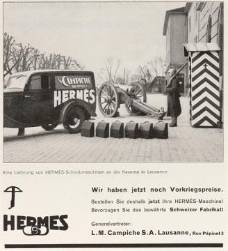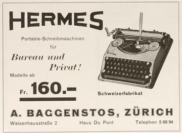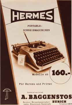 Werbeanzeige für Schreibmaschine Hermes monochrom