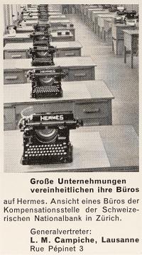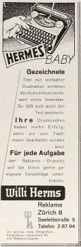 Werbeanzeige für Schreibmaschine Hermes 5 monochrom