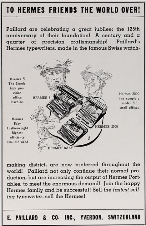 Werbeanzeige für Schreibmaschinen Hermes monochrom