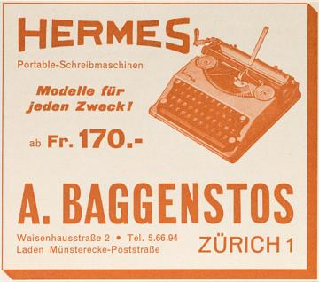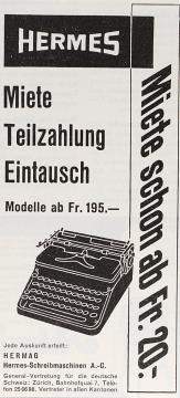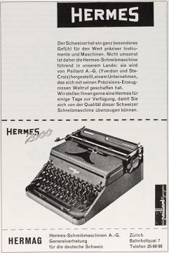 Werbeanzeige für Schreibmaschine Hermes monochrom