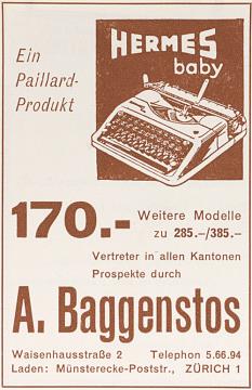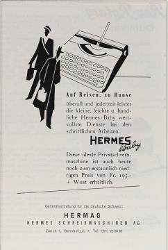Werbeanzeige für Schreibmaschine Hermes Baby monochrom