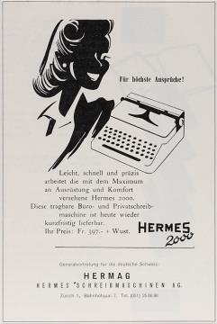 Werbeanzeige für Schreibmaschine Hermes 2000 monochrom